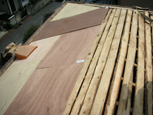 現在着工中の新築工事です。メーカー新発売の瓦を葺きます。現在屋根下地材の
