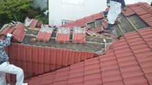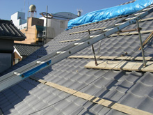 既存の屋根は土葺きといわれる工法で葺かれているため瓦のズレが生じています。