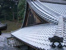 由緒あるお寺で現在でも古来の杉皮下葺きに土葺きの工法です。土葺き工法が少